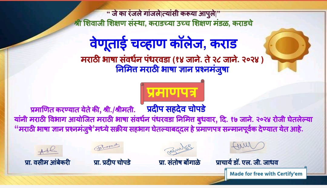 मराठी भाषा गौरव दिन -Updated on: 27-01-2024.